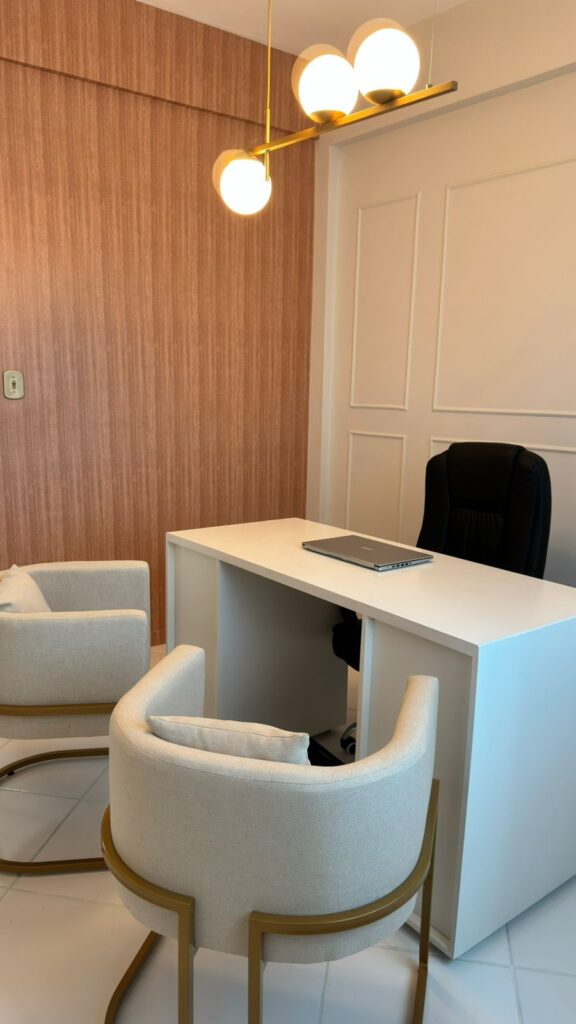 O escritório foi cuidadosamente planejado para proporcionar um ambiente elegante e aconchegante, garantindo que cada visita seja uma experiência agradável e acolhedora. Estamos localizados na rua Raul Soares, n°122A, sala 101, Centro, Salinas/MG. Para sua comodidade, também oferecemos atendimento online, permitindo que você resolva suas questões jurídicas de forma prática e ágil, de onde estiver!